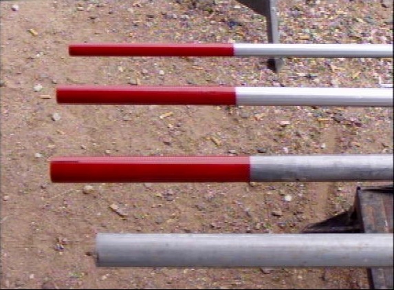 Paint one end of the 3 smaller pipes with red paint; about 7 inches is fine.