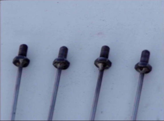 Weld the 4 radials to the heads of the 1/4 by 20 bolts (4 TIG wires cut