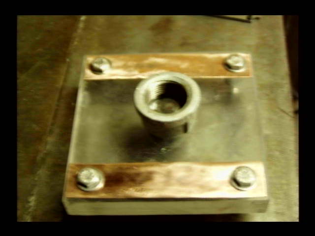 To make copper strap, cut 1/2" copper tubing in half, then pounded each half flat. Cut to length, then drill them with 1/4" holes to match the holes in antenna platform. To accommodate a mount to the push up pole, grind flat the top of a 1/2" pipe cap, then drill a 3/8" hole in the center of the cap. Placed a 3/8" bolt thru both the pipe cap and the Plexiglas. This allows the platform to be mounted to the push up pole.