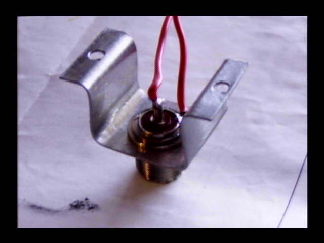 Those that want the convenience of a SO-239 for coax feed, here is how I did it. 1 1/2" strap drilled to accept the so-239, with wires of equal length soldered to both the center and ground side of the receptacle. Number 16 wire is great. Bend bracket according to photo, and drill mount holes on bracket.