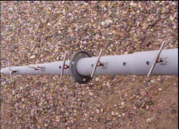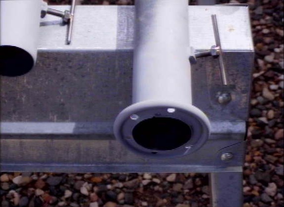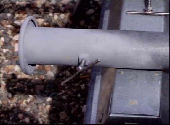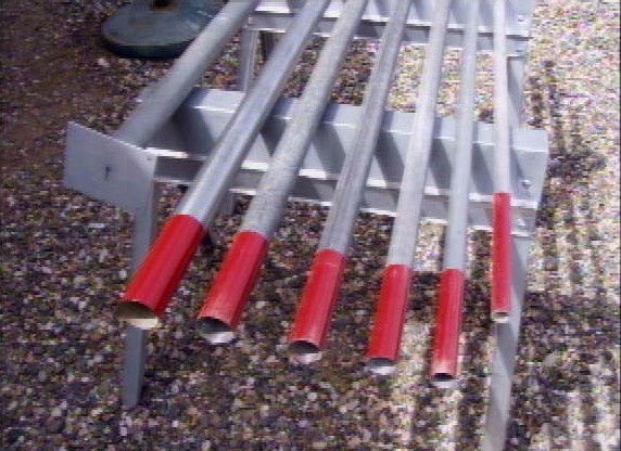 It is very important to drill a 1/4" hole, 7" down from the top of each of the lower 5 sections of EMT pipe. When the inner section is raised and clears this hole, a 1/4" bolt should be placed thru the pipe. This allows the weight of all upper sections of pipe to bear down on the bolt.